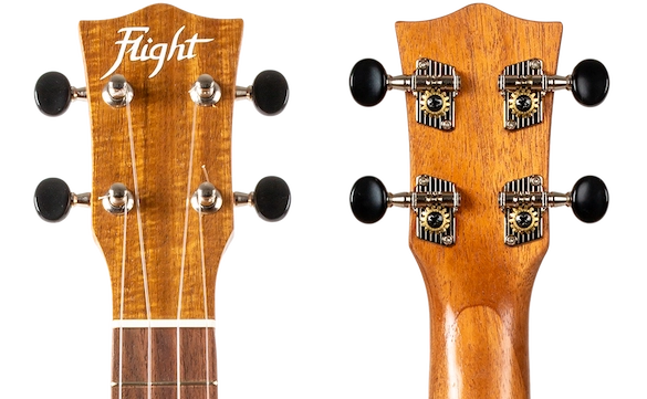Headstock design is an integral part of our identity. All Flight ukuleles feature a carefully-designed headstock fitted with geared tuners that will hold their tuning.