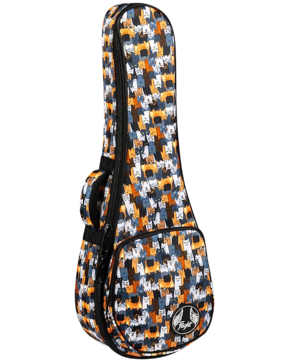 A gig bag is not just a gig bag, and the Flight FUB S CATS Gig Bag proves it. This is the first time Flight is launching gig bags with a printed design instead of solid colors, bringing a whole new level of personality to your ukulele case. Inspired by the iconic Flight S35 Cats strap, this fun and eye catching look lets you show your style wherever you go.