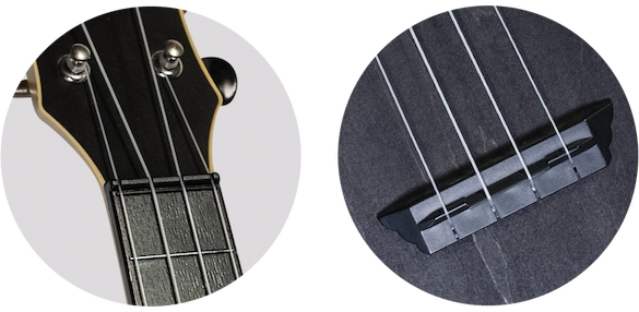 The neck and fingerboard of the TUS-35 are made from ABS plastic. It is a perfect solution for entry class ukuleles, since it is not prone to any weather changes. You will never get a sharp fret or bent neck in any of our Travel ukuleles. The neck surface imitates the wood pattern, to avoid a feeling of cheap plastic.