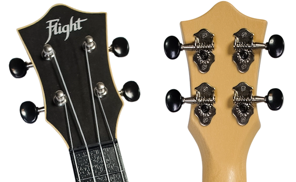 Headstock design is an integral part of our identity. The headstock veneer of TUS35 is made of linden and matches the color of the top. All Flight ukuleles feature a carefully-designed headstock fitted with geared tuners that will always stay in tune.